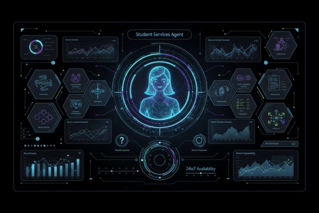Purpose: The Student Services Agent acts as a first-line concierge for students, available 24×7 to resolve routine queries and service requests, and to route more complex issues to the right campus office.